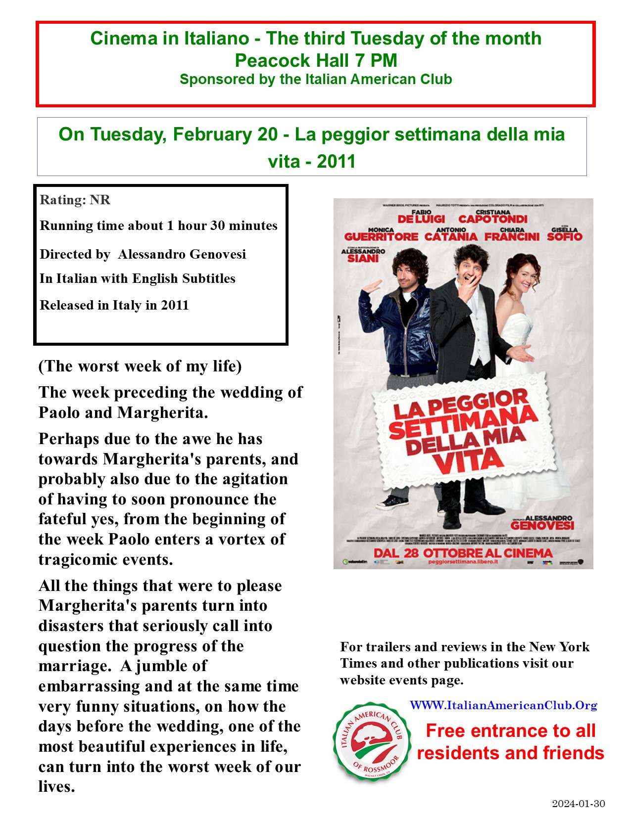 Cinema in Italiano – Peacock Theater – La peggior settimana della mia vita